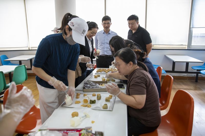 9月28日上午,集團公司工會組織中秋月餅DIY活動。工作人員將月餅材料分發(fā)到大家手中,烘焙老師耐心為大家演示,大家一同合作,從配料的挑選—揉皮—裹餡—入模—成型,一個個形狀精美、象征團圓的月餅呈現(xiàn)在大家眼前。