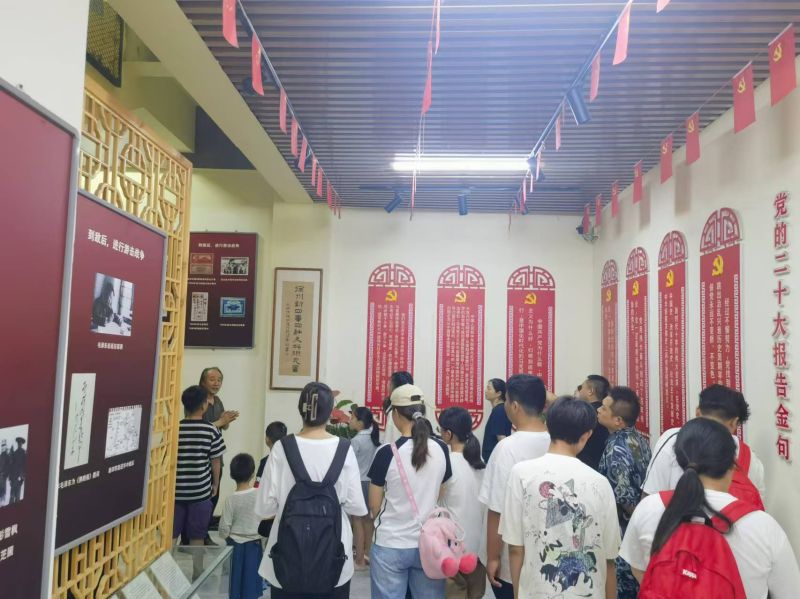 在原徐州書畫院書記、副院長晁岱衛(wèi)同志的帶領下,青少年兒童們參觀了蘇悅黨史陳列館。通過新四軍四師在邳睢銅地區(qū)戰(zhàn)斗的史料圖片、一級八一勛章、一級解放勛章、一級獨立自由勛章等蘊含歷史內(nèi)涵的實物陳列品,直觀了解新四軍將士用鮮血和生命鍛造的偉大的新四軍精神;通過講述黨的光輝歷程,分享紅色故事,厚植愛黨、愛國、愛人民的情懷,讓紅色基因代代相傳。