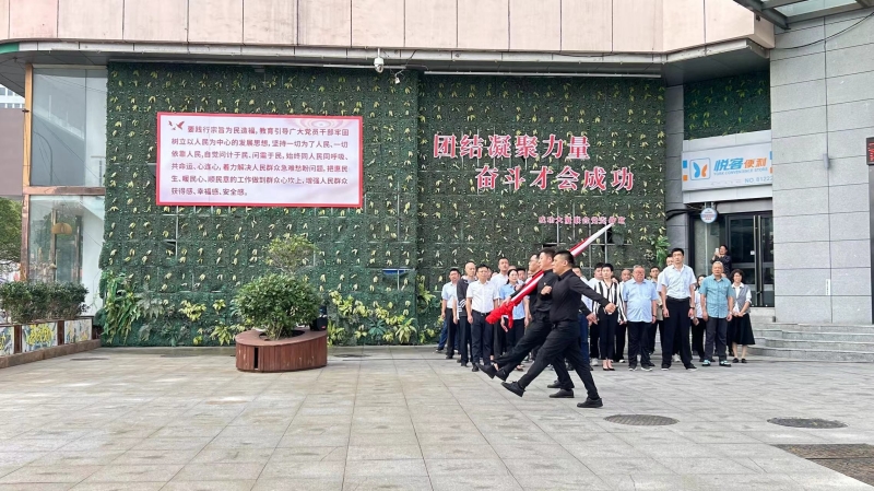 升旗儀式結(jié)束后,華強(qiáng)資產(chǎn)公司黨總支副書記、副總經(jīng)理蘇楊發(fā)言指出,75年前,新中國(guó)的成立標(biāo)志著中華民族站起來(lái)了,這是中國(guó)共產(chǎn)黨領(lǐng)導(dǎo)下,全體人民共同奮斗的偉大成果。今天,我們?cè)谶@里舉行新中國(guó)成立75周年國(guó)慶升旗儀式,就是為了讓廣大干部員工銘記歷史,凝聚奮進(jìn)力量。前行道路上,全體華強(qiáng)人要把愛黨愛國(guó)熱情融入到日常工作中,再鼓干勁,再添措施,以更加振奮的精神風(fēng)貌、更加扎實(shí)的工作作風(fēng),創(chuàng)造出更加輝煌的未來(lái)。