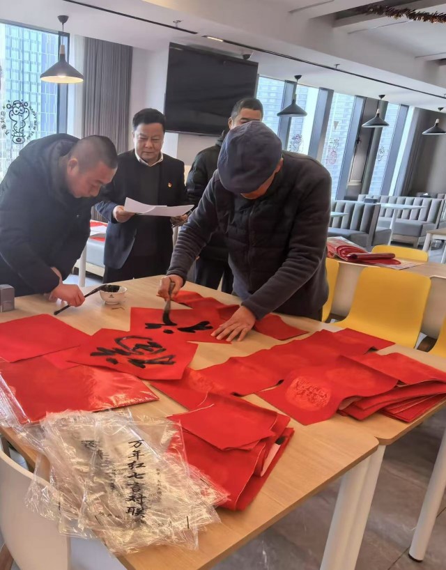 “歲歲平安如意到,年年吉祥福星高”“新春福旺鴻運(yùn)開,佳節(jié)吉祥如意來”……活動(dòng)中,江蘇省書法家協(xié)會(huì)會(huì)員胡樹森老師揮毫潑墨、筆走龍蛇、氣韻生動(dòng),一幅幅平安和諧、寓意吉祥的春聯(lián)和“?!弊周S然紙上,職工們邊欣賞、邊拍照,手持春聯(lián),喜笑顏開。大家互相討論著各副春聯(lián)的蘊(yùn)意,紛紛表示這是送到心坎里的新春祝福,也給即將到來的新春增添了濃濃的年味。
