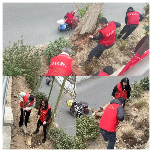 活動現(xiàn)場,黨員們充分發(fā)揮模范帶頭作用,他們身穿“黨員先鋒隊”紅馬甲、佩戴黨員徽章,精神飽滿、熱情高漲地投身在綠化活動中,大家二人成組、三人成團,有的扶苗栽種,有的揮鍬填土,有的抬水澆灌,各個環(huán)節(jié)一絲不茍、井然有序。在黨員先鋒隊成員們的辛勤勞動和默契配合下,南天竹、迎春花等綠植苗紛紛被種下,為社區(qū)綠化帶增添了新景觀。