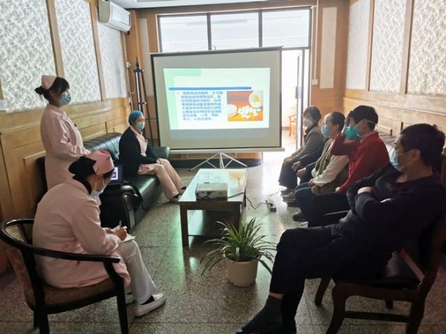 院內(nèi)健康教育常態(tài)化推進(jìn)。各臨床科室護(hù)理組運用床頭宣教、健康講座、發(fā)放宣傳手冊、制作宣教視頻等多種方式,隨時隨地為住院患者及家屬傳授疾病知識、提供用藥指導(dǎo)、開展康復(fù)護(hù)理等健康教育服務(wù),覆蓋率高達(dá)100%,深受患者及家屬的認(rèn)可與歡迎。護(hù)理部還充分利用門診區(qū)域的電子屏、展板等宣傳載體,廣泛普及常見病防治知識,有效提升了患者的自我健康認(rèn)知及管理能力。