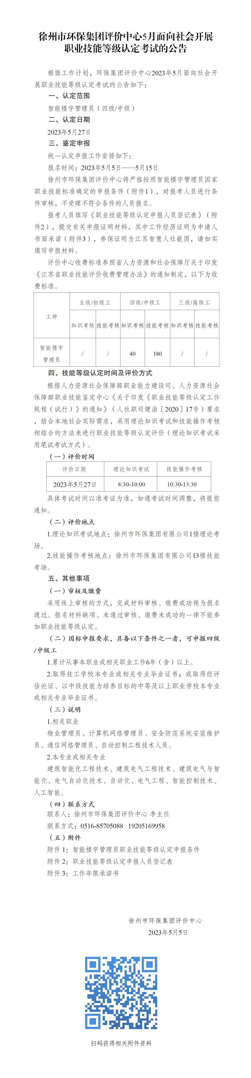 考試公告|徐州市環(huán)保集團(tuán)評(píng)價(jià)中心5月面向社會(huì)開(kāi)展職業(yè)技能等級(jí)認(rèn)定考試的公告