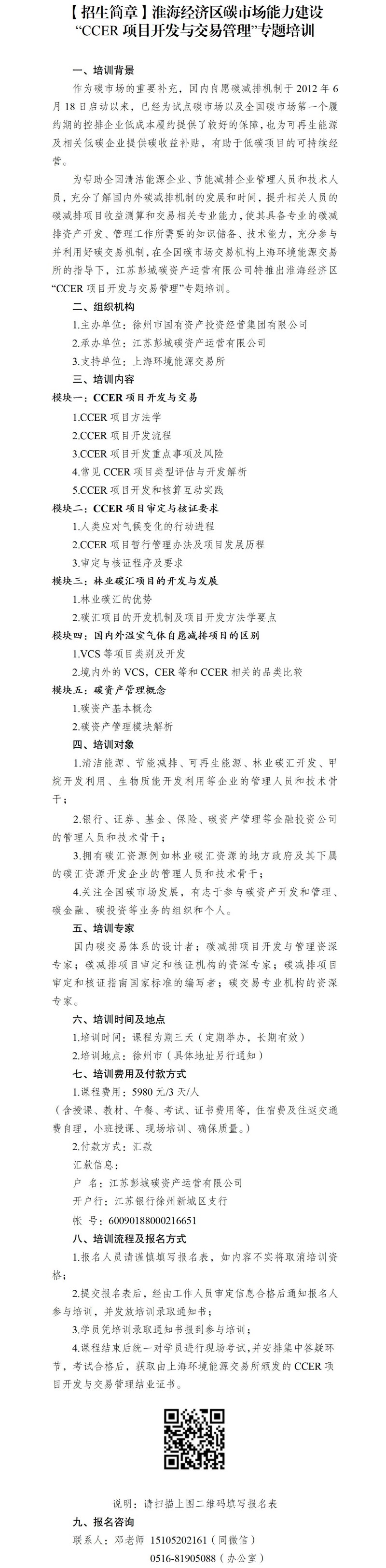【招生簡章】淮海經(jīng)濟(jì)區(qū)碳市場能力建設(shè)“CCER項(xiàng)目開發(fā)與交易管理”專題培訓(xùn)