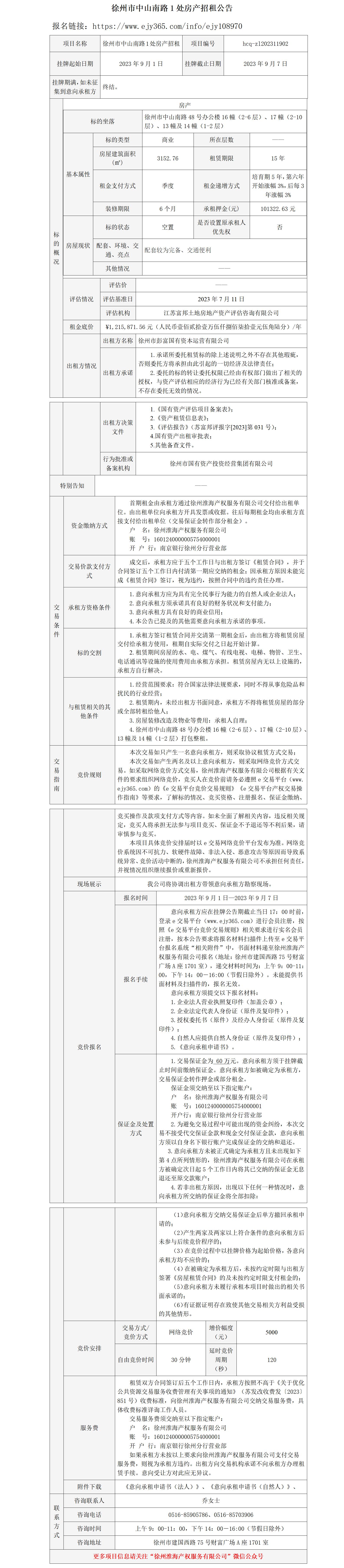 徐州市中山南路1處房產(chǎn)招租公告
