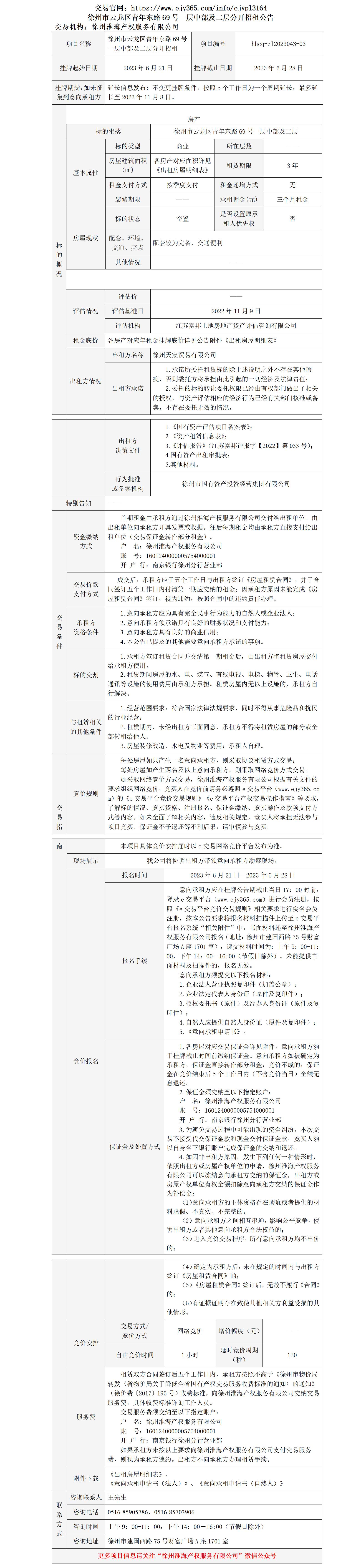 徐州市云龍區(qū)青年東路69號一層中部及二層分開招租公告