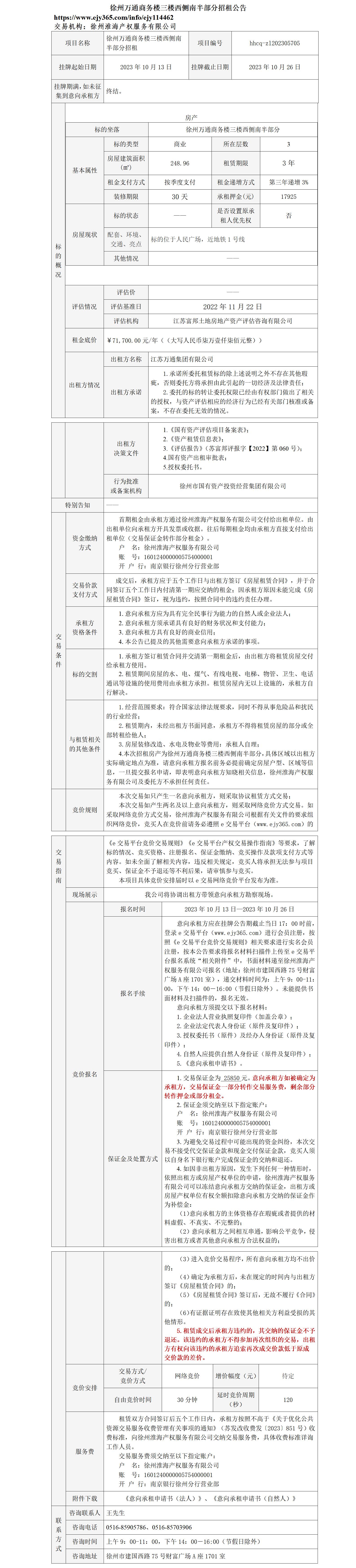 江蘇省徐州市云龍區(qū)中山南路65號輕工大樓1002招租公告