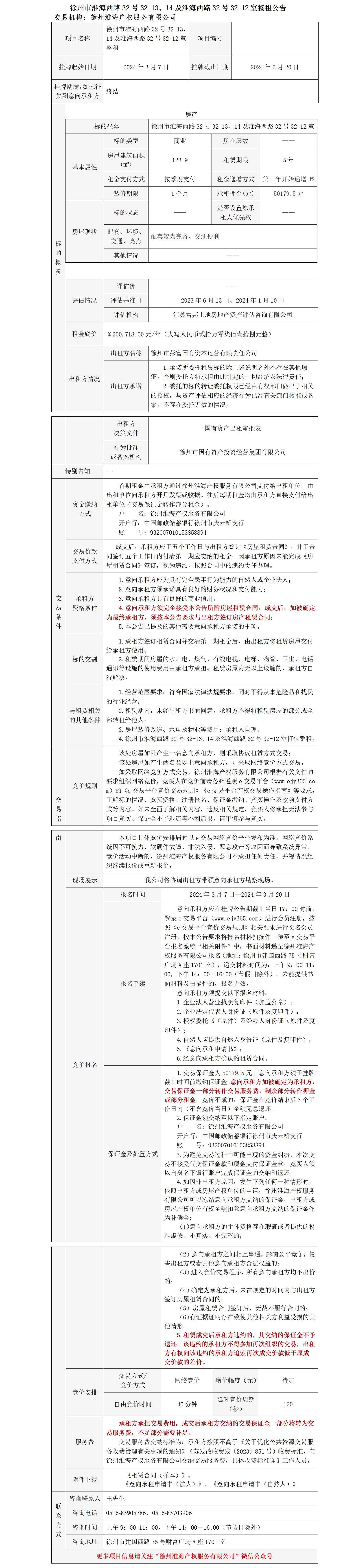 徐州市淮海西路32號32-13、14及淮海西路32號32-12室整租公告