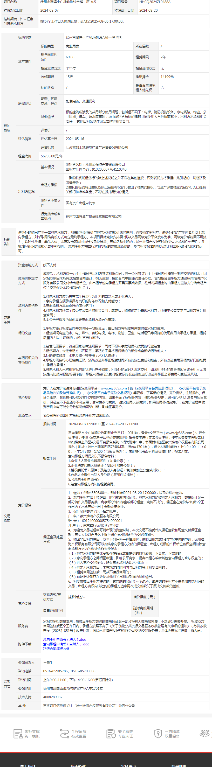 徐州市湖濱小廣場北側(cè)綜合樓一層-東5招租公告