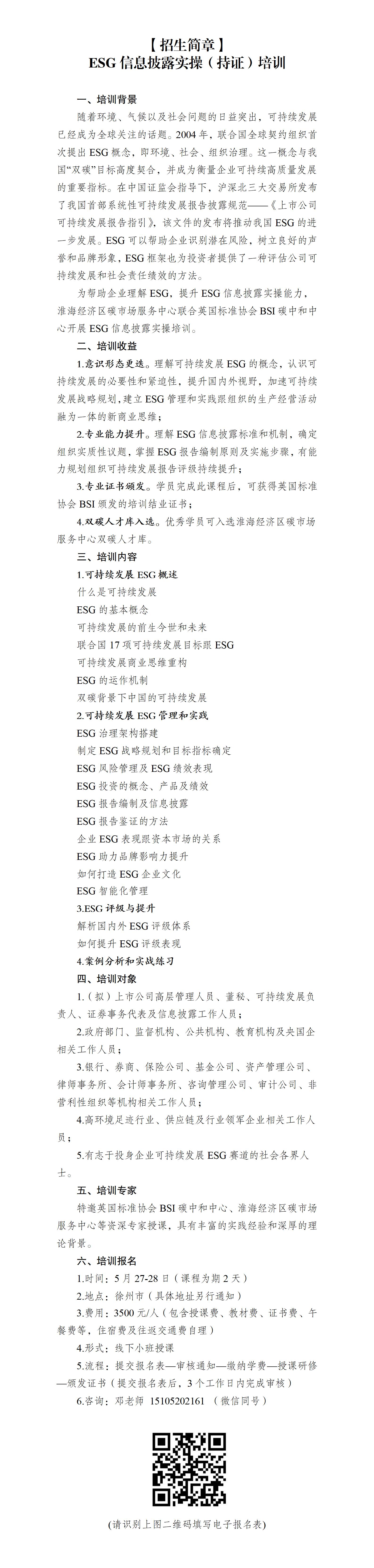 【招生簡(jiǎn)章】ESG信息披露實(shí)操(持證)培訓(xùn)