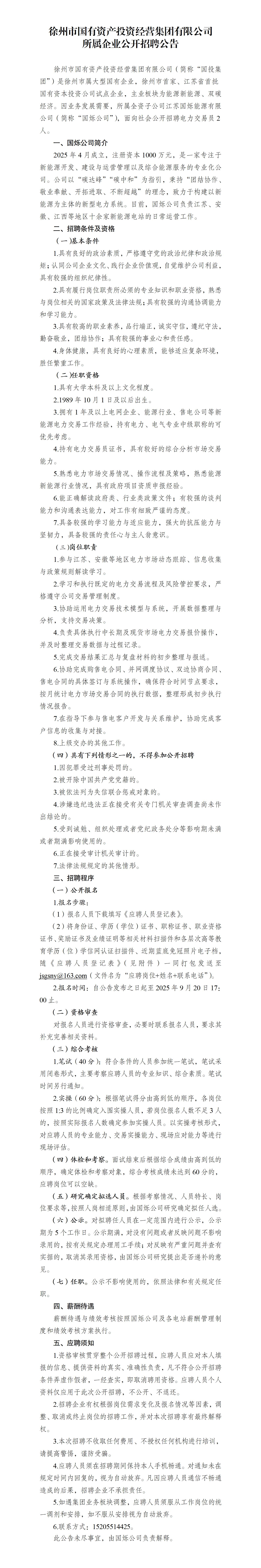 徐州市國有資產(chǎn)投資經(jīng)營集團(tuán)有限公司所屬企業(yè)公開招聘公告