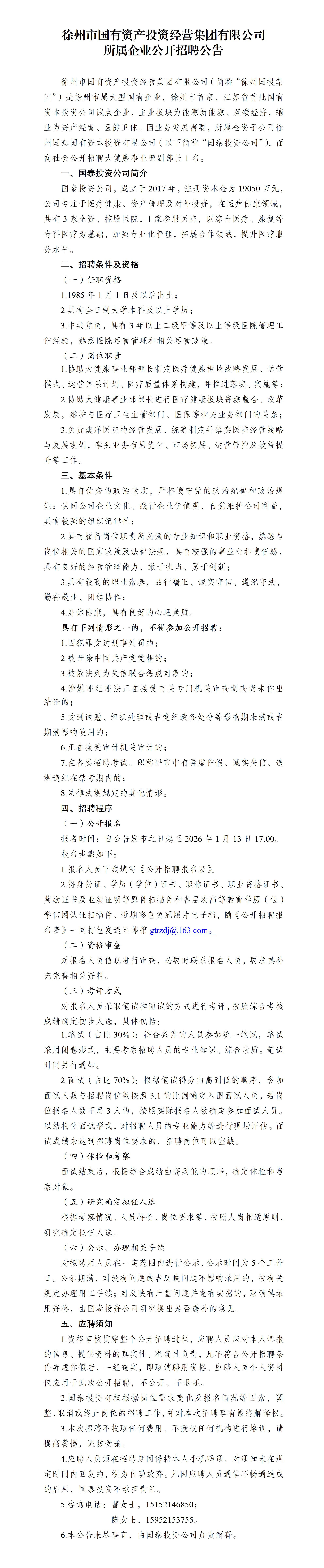 徐州市國(guó)有資產(chǎn)投資經(jīng)營(yíng)集團(tuán)有限公司公開(kāi)招聘公告