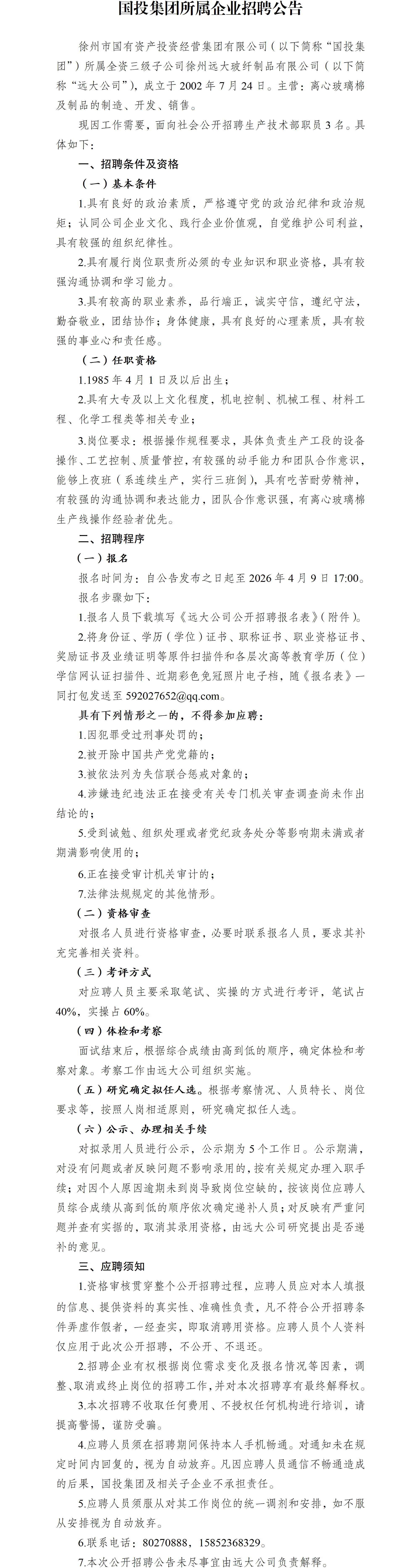 徐州市國有資產投資經營集團有限公司所屬企業(yè)對外公開招聘公告