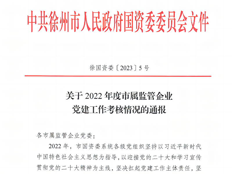 集團(tuán)公司黨委獲評(píng)市屬企業(yè)黨建考核優(yōu)秀等次