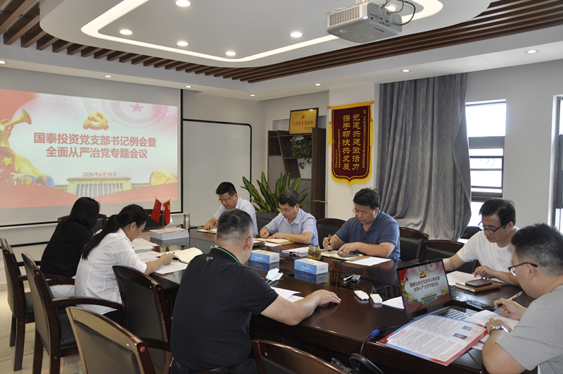 2020年6月10日下午,國(guó)泰投資黨總支召開支部書記例會(huì)暨全面從嚴(yán)治黨專題工作會(huì)議。會(huì)議以習(xí)近平新時(shí)代中國(guó)特色社會(huì)主義思想為指導(dǎo),深入學(xué)習(xí)市紀(jì)委第十二屆五次全會(huì)精神,貫徹落實(shí)李曉東同志在集團(tuán)公司2020年全面從嚴(yán)治黨工作會(huì)議上的講話,推動(dòng)國(guó)泰投資公司全面從嚴(yán)治黨向縱深發(fā)展。會(huì)議由國(guó)泰投資黨總支書記霍凱主持,黨總支中心組成員、各直屬黨支部書記參加。