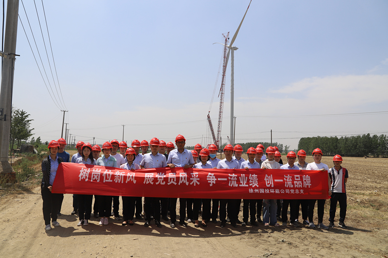 6月11日上午,國投環(huán)能黨總支組織所屬機關(guān)黨支部、國新黨支部、國湖黨支部、國投新奧黨支部黨員及入黨積極分子開展“深入一線、服務(wù)基層”主題黨日活動,赴新沂市阿湖鎮(zhèn)一期90MW風(fēng)電項目現(xiàn)場觀摩風(fēng)機吊裝,并前往小窯頭烈士陵園憑吊革命先烈。