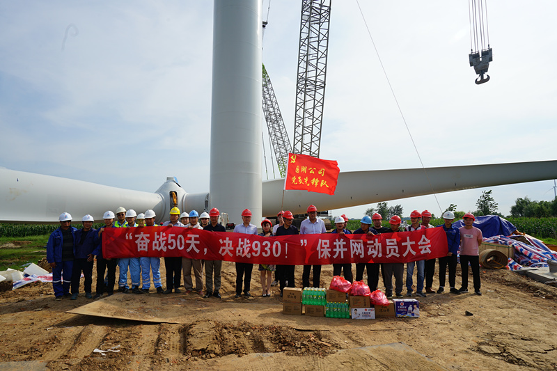 在國(guó)湖公司新沂市阿湖鎮(zhèn)一期90MW風(fēng)電項(xiàng)目最后攻堅(jiān)沖刺階段,為確保全體干部職工和參建單位進(jìn)一步飽含奮斗熱情、激發(fā)拼搏動(dòng)力,圓滿(mǎn)完成9月30日前并網(wǎng)目標(biāo),8月13日下午,國(guó)湖公司組織召開(kāi)“奮戰(zhàn)50天、決戰(zhàn)930”保并網(wǎng)動(dòng)員大會(huì)。集團(tuán)公司黨委委員、副總經(jīng)理?xiàng)铐g,國(guó)投環(huán)能黨總支書(shū)記、國(guó)湖公司董事長(zhǎng)孫雷,國(guó)投環(huán)能財(cái)務(wù)總監(jiān)趙芹,國(guó)投環(huán)能總經(jīng)理助理、國(guó)湖公司總經(jīng)理余躍,國(guó)湖公司項(xiàng)目部、監(jiān)理、審計(jì)、總承包單位及風(fēng)機(jī)廠家有關(guān)負(fù)責(zé)人參加動(dòng)員大會(huì)。