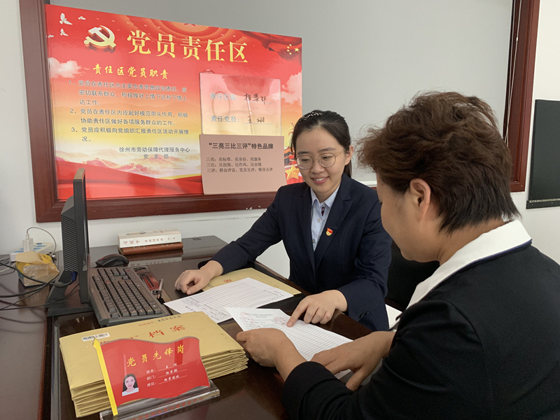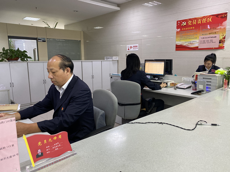 勞代支部根據(jù)工作實(shí)際,設(shè)立兩個(gè)黨員責(zé)任區(qū),分別為大廳服務(wù)區(qū)和檔案管理區(qū)。責(zé)任區(qū)內(nèi),做到“三亮”:第一,亮標(biāo)準(zhǔn)。區(qū)域內(nèi)懸掛“首問責(zé)任制”“一次性告知制”“限時(shí)辦結(jié)制”“服務(wù)承諾制”等相關(guān)業(yè)務(wù)辦理制度標(biāo)準(zhǔn)。第二,亮身份。黨員上崗一律主動佩戴黨徽,設(shè)置黨員先鋒崗,勇于公開黨員信息和照片,亮出黨員身份,主動接受群眾監(jiān)督。第三,亮承諾。在崗位顯著位置向辦事群眾公開黨員承諾內(nèi)容和黨員職責(zé),激勵黨員同志立足本職崗位做貢獻(xiàn),踐行黨員承諾。