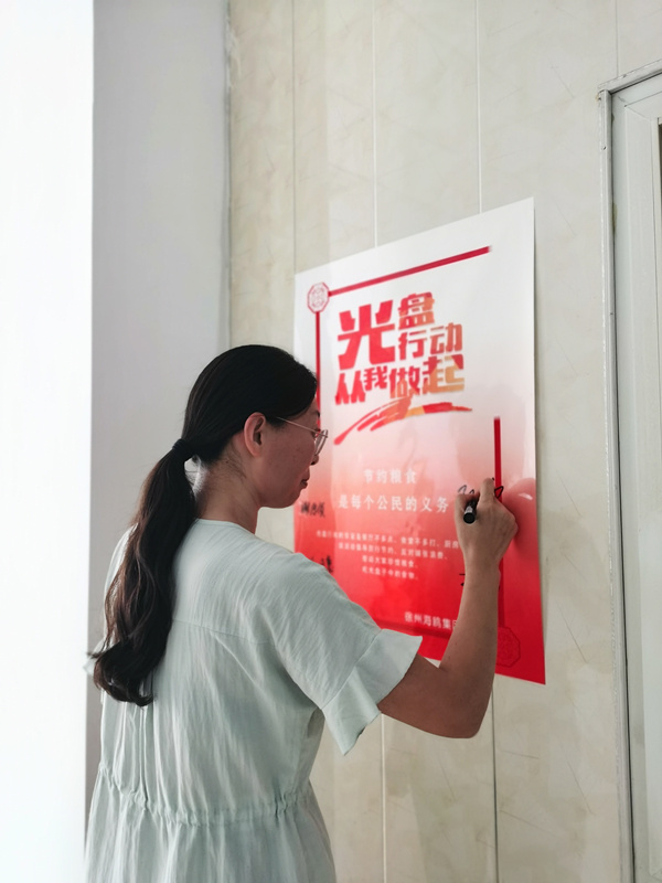 主題活動以宣傳“吃飯當節(jié)儉”“吃光盤中餐”“人人爭做‘光盤達人’”“一個員工要帶動一個家庭”“‘厲行節(jié)約,反對浪費’光盤行動從你我做起”等口號,號召全體員工簽訂倡議書,鄭重承諾:拒絕浪費,從我做起!一起爭做城市的文明人,努力形成全社會參與的厲行勤儉節(jié)約、反對鋪張浪費良好氛圍。