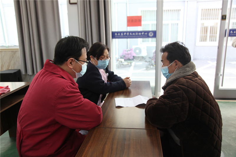 朱王莊中學(xué)校長(zhǎng)霍久陽(yáng)帶領(lǐng)志愿者們來(lái)到會(huì)議室,四個(gè)低保家庭的學(xué)生及家長(zhǎng)已經(jīng)在這里等候,志愿者們將帶來(lái)的物品交到每個(gè)家庭手中,并與孩子及家長(zhǎng)進(jìn)行了深入交流談心,為他們解答生活、學(xué)習(xí)過(guò)程中的困惑,同時(shí),醫(yī)務(wù)人員為他們進(jìn)行了健康體檢和健康教育,對(duì)生活方式、飲食選擇等進(jìn)行指導(dǎo)。