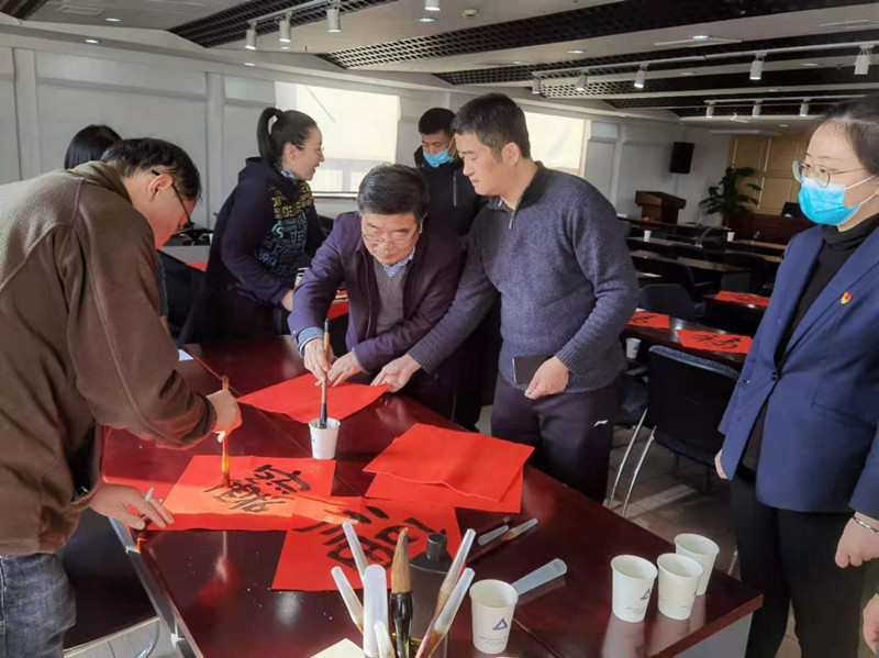 為傳承中華優(yōu)秀文化,下午15時,“丹青送福寫春聯(lián),紅紅火火過大年”活動火熱舉行?;顒蝇F(xiàn)場墨香滿廳,“喜居寶地年年旺,福照家門事事興”“新春福旺鴻運開,佳節(jié)吉祥如意來”,一行行俊逸的書法,一句句真誠的祝福,既寫出了廣大職工對新年的期盼,也描繪了大家對美好生活的憧憬和向往,現(xiàn)場的氣氛十分熱鬧。