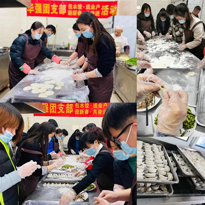 2021年2月10日,恰逢庚子鼠年最后一個工作日,華強資產(chǎn)公司團支部在新春來臨之際,組織各部室青年干部職工在公司食堂開展了熱氣騰騰的“包水餃 送業(yè)戶 迎新春 共奮進”活動,不僅為體育館部分業(yè)戶及堅守崗位的物業(yè)工作人員送去關(guān)懷和問候,還為華強全體職工親手制作了一頓年味滿滿的餃子工作餐。