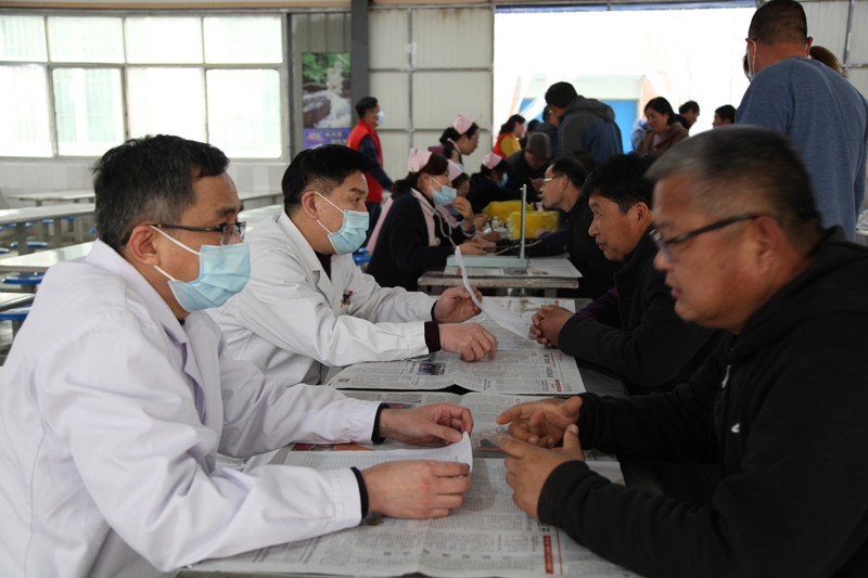 在健康體檢現(xiàn)場,9名醫(yī)務人員為朱王莊中學的50多名教師測量了血壓,檢測了血糖、視力,為檢查結(jié)果異常的職工建立了健康檔案,并對教師們開展了健康宣教,提供了健康咨詢、疾病診治及用藥指導,耐心解答他們關(guān)心的健康問題。