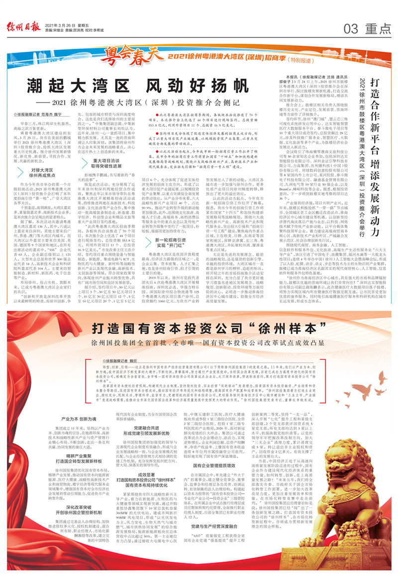 自2017年被確定為全市首家國(guó)有資本投資運(yùn)營(yíng)公司改革試點(diǎn)、2019年被確定為全省首批國(guó)有資本投資公司改革試點(diǎn)以來(lái),集團(tuán)公司堅(jiān)持全面深化改革,勇于作為,創(chuàng)新作為,推出系列改革舉措,取得了明顯成效,徐州日?qǐng)?bào)對(duì)集團(tuán)公司改革試點(diǎn)工作進(jìn)行了專題報(bào)道,全文如下: