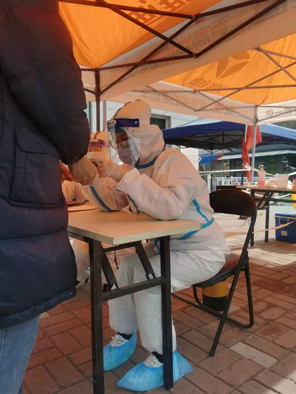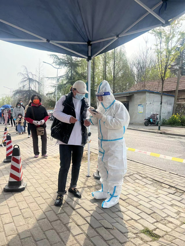 徐鑫在3月28日晚接到云龍區(qū)急需志愿者的通知后,沒(méi)有片刻地猶豫,立即報(bào)名,以最快速度加入了首批志愿者行列,從協(xié)助醫(yī)護(hù)及社區(qū)工作人員進(jìn)行第一輪核酸檢測(cè)服務(wù)開(kāi)始,一直到現(xiàn)在,徐鑫已堅(jiān)守在志愿者崗位長(zhǎng)達(dá)10天,是華強(qiáng)資產(chǎn)公司服務(wù)時(shí)間最長(zhǎng)的一位志愿者,他所服務(wù)的社區(qū)多達(dá)4個(gè),橫跨云龍區(qū)、泉山區(qū)。在核酸檢測(cè)服務(wù)中,徐鑫始終堅(jiān)守一線,化身全能“大白”,儼然已成為后續(xù)報(bào)到的志愿者們的“導(dǎo)師”,上午采集黃碼人員信息,下午上門核發(fā)通行證,搬運(yùn)物資,維持秩序,參與每日例會(huì),為社區(qū)疫情防控積極建言獻(xiàn)策……志愿者的全線崗位都有徐鑫奔波忙碌的身影,他堅(jiān)定地向社區(qū)保證:“戰(zhàn)‘疫’不停,絕不離崗”!