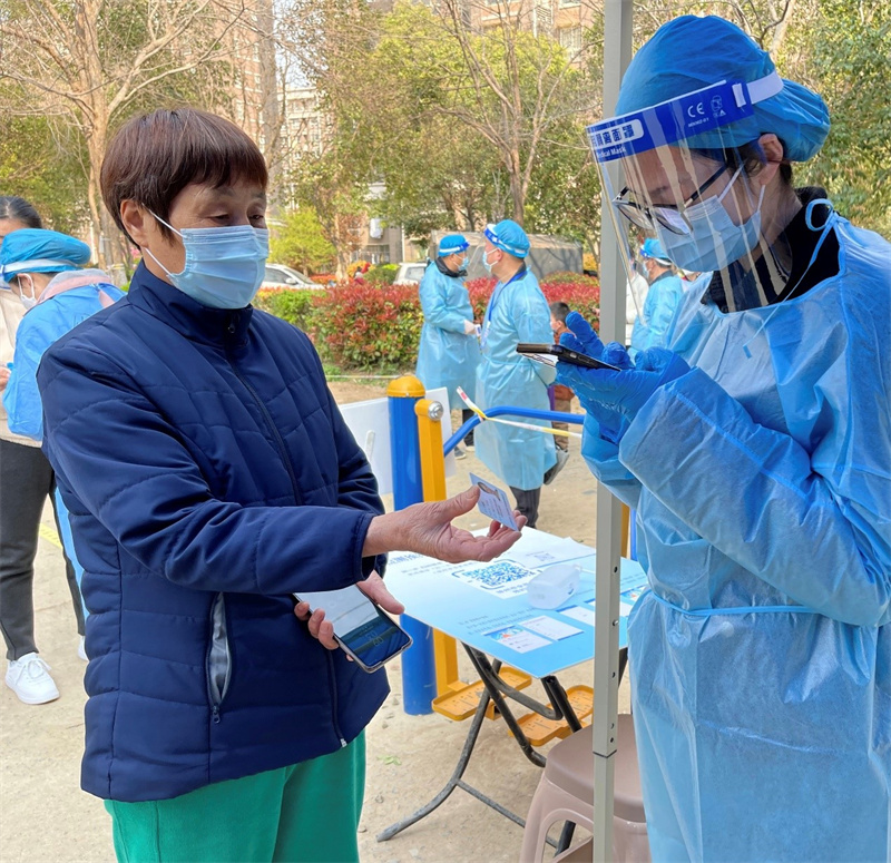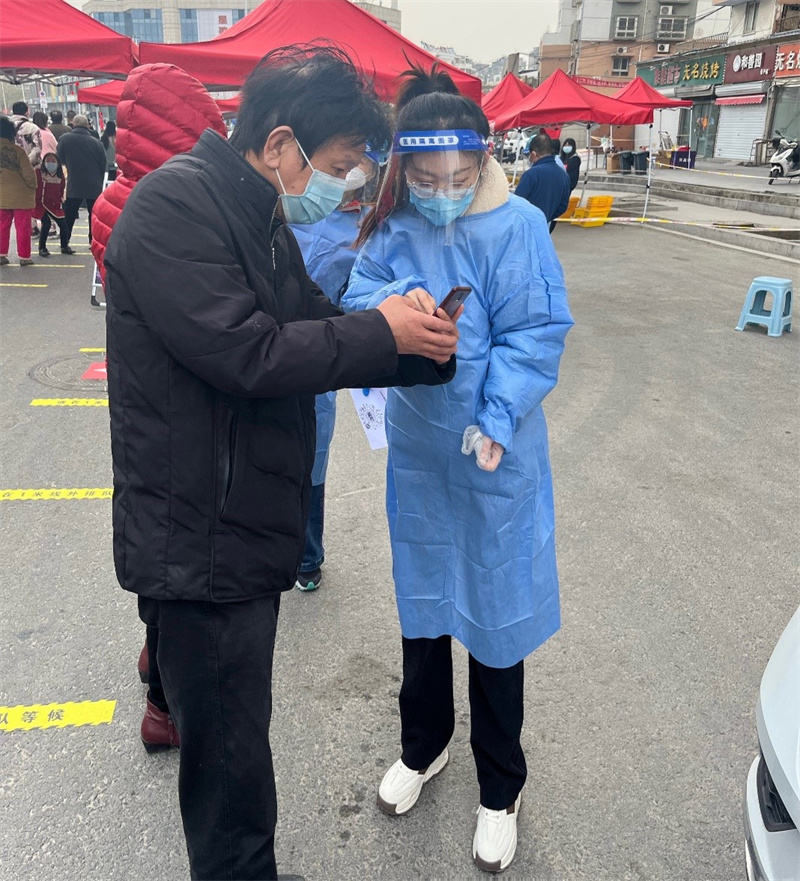 “孩子,謝謝你啊,辛苦了”子房山社區(qū)的爺爺奶奶們對王雪斐說道。王雪斐是國泰公司一名90后青年,第一次去子房山社區(qū)做核酸檢測時,她發(fā)現(xiàn)社區(qū)里面老年人比較多,因為不會用兩碼造成檢測效率低,老年人排隊時間久,急需一個能夠主動幫助老年人的志愿者。她打定主意后,聯(lián)系社區(qū)加入了戰(zhàn)疫工作,在完成發(fā)放防疫物資、出入證件、維持隊伍秩序、登記居民信息的基礎工作間隙,她還主動幫助爺爺奶奶們打開兩碼、耐心的告知核酸檢測時間和注意事項。一天下來,忙前忙后,她卻滿不在乎地說道:“不要緊,疫情就是命令,為了人民的利益,為了戰(zhàn)疫的勝利,我們青年人就是戰(zhàn)疫的一塊磚,哪里需要哪里搬?!?