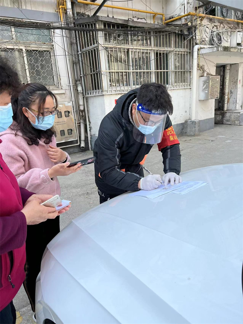 青年黨員董馮波是國泰地產公司工程部主管,參加抗疫志愿服務以來,他一直在淮海西路老礦務局停車場的黃碼檢測點查驗兩碼,同時提醒黃碼人員,兩次核酸檢測時間要間隔24小時以上。由于黃碼檢測點風險相對更大,他每天從早上6:30到下午3:30都需要穿著“大白”,一天下來除了中午半小時吃飯時間,一站就是8、9個小時。董馮波4歲半的女兒和不到3歲的兒子在家想爸爸了,給他打來了視頻電話,可是手機放在層層防護下的“大白”里不方便拿出來,即便如此,他仍樂觀地說“當組織需要時,青年黨員就應當沖鋒在前,甘于奉獻,雖然漏接了孩子的視頻電話,但我相信我用行動給孩子作了一個好榜樣?!?