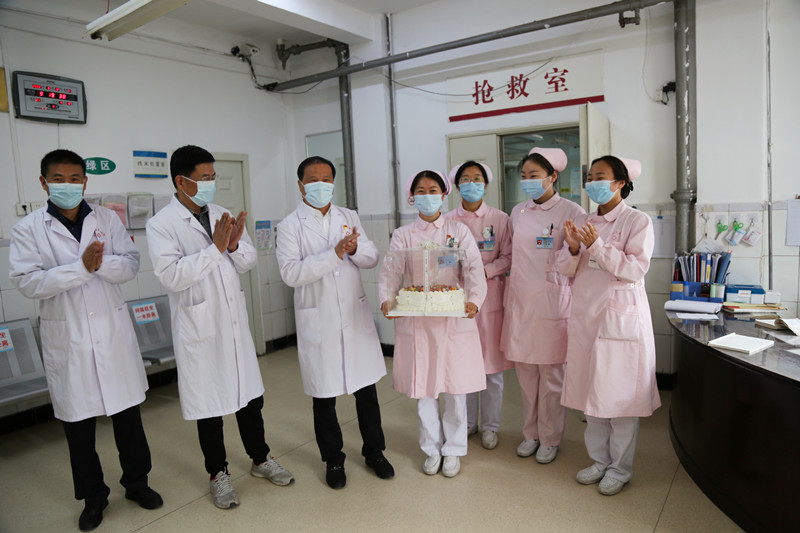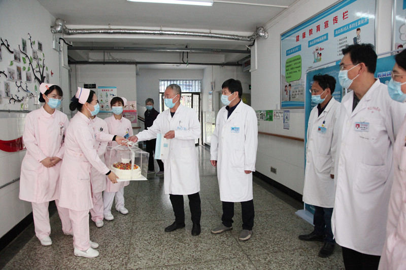 5月12日上午,院領(lǐng)導(dǎo)分成兩組,分別在黨委書記孫守訪、院長張心海帶領(lǐng)下,帶著定制的節(jié)日蛋糕來到臨床一線,慰問堅(jiān)守崗位的護(hù)理姐妹們。每到一處病區(qū),院領(lǐng)導(dǎo)向她們送上誠摯的節(jié)日祝福,感謝她們對醫(yī)院護(hù)理工作的付出,叮囑她們在做好工作的同時(shí),也要做好自身防護(hù),保重身體健康。護(hù)士們特別開心,紛紛感謝醫(yī)院的關(guān)愛,表示將遵守南丁格爾誓言,一如既往獻(xiàn)身護(hù)理工作,為患者減輕痛苦、促進(jìn)康復(fù),為醫(yī)院發(fā)展貢獻(xiàn)力量。