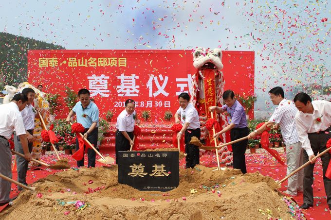 8月30日上午10:58分,國(guó)泰·品山名邸項(xiàng)目的奠基儀式順利舉行。集團(tuán)公司董事長(zhǎng)李修明、總經(jīng)理李曉東、副總經(jīng)理屈炎、馬英、姜巖、吳昊、紀(jì)委書記趙軍、副調(diào)研員劉立吉以及集團(tuán)公司各部室和各下屬公司負(fù)責(zé)人前來(lái)參加,參加儀式的還有國(guó)泰公司全體人員及施工單位代表等。