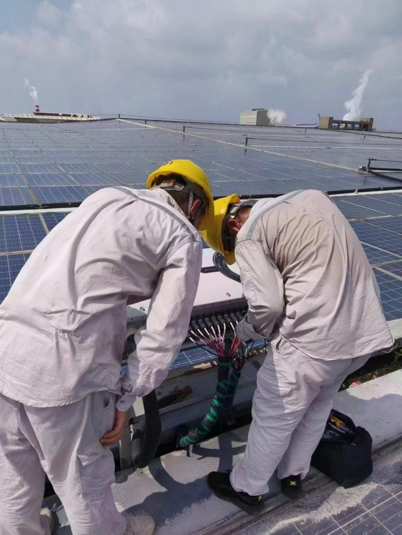 而行,打好迎峰度夏主動仗為保障高溫天氣下設(shè)備安全可靠運行,國湖公司加強風(fēng)機設(shè)備接頭的測溫、點檢和設(shè)備冷卻裝置的維護(hù)保養(yǎng),防止設(shè)備故障過熱損壞,工作現(xiàn)場采取風(fēng)扇降溫、涼水降溫、藥品等有效防暑措施,杜絕高處作業(yè)及受限空間作業(yè)人員中暑。高溫炙烤下,光伏板表面溫度急劇上升,加大了設(shè)備安全風(fēng)險,安徽區(qū)域10家光伏電站對每一塊光伏板、每一條電纜、每一個逆變器進(jìn)行細(xì)致入微的檢查與維護(hù);國源、國晟公司加大巡視力度,及時處理設(shè)備故障,對部分區(qū)域內(nèi)遮擋組件的雜草進(jìn)行清理,減少發(fā)電損失;豐城公司運維人員積極開展設(shè)備維護(hù)檢修工作,并結(jié)合治本攻堅三年行動,開展直流電纜專項安全排查。同時,各所屬公司靈活調(diào)整戶外作業(yè)時段,發(fā)放防暑降溫藥品,做好預(yù)防中暑應(yīng)對措施。