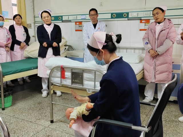 內(nèi)三科開展了突發(fā)誤吸應(yīng)急處置演練。演練包括患者清醒時發(fā)生誤吸,臥床意識不清患者、嬰幼兒及孕婦等特殊人群誤吸時的應(yīng)急處理,以及獨自一人時發(fā)生誤吸的自救,通過多場景、多人群展現(xiàn)了不同時刻發(fā)生危急誤吸情況的搶救方法。外科開展了患者發(fā)生靜脈炎時的應(yīng)急演練。模擬場景為住院患者在輸液過程中突然手臂疼痛,輸液部位周圍紅腫,護士立即停止輸液,將患肢抬高制動,并匯報醫(yī)生,予以對癥處理。護士在演練過程中密切觀察患者情況,同時做好患者的心理安撫工作。