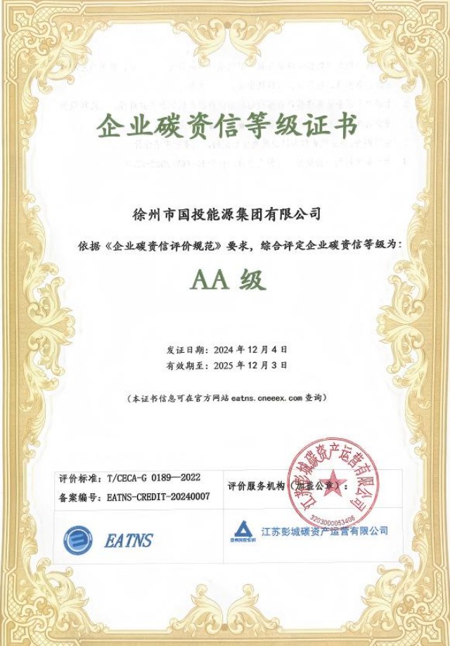 近日,在江蘇彭城碳資產(chǎn)運(yùn)營(yíng)有限公司的專業(yè)咨詢協(xié)助下,經(jīng)華測(cè)認(rèn)證有限公司專家組的嚴(yán)格評(píng)審,能源集團(tuán)成功通過碳管理體系認(rèn)證審核,并獲得由上海環(huán)境能源交易所頒發(fā)的EATNS碳管理體系證書,成為全市率先獲得該體系認(rèn)證的企業(yè)。同時(shí),碳資信評(píng)價(jià)等級(jí)實(shí)現(xiàn)AA,標(biāo)志著企業(yè)在“雙碳”管理工作方面取得了重大突破。