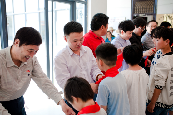 總支一班人提前到達(dá)張樓村社區(qū)居委會(huì)等待孩子們的到來。九位貧困學(xué)生到齊后,在臨時(shí)布置的宣傳欄前,舉行了慰問儀式。首先由科創(chuàng)總支黨員和村文書、村會(huì)計(jì)給每位學(xué)生佩戴嶄新的紅領(lǐng)巾,然后由黨建指導(dǎo)員劉立吉向?qū)W生們宣讀了習(xí)近平總書記2016年“六一”前夕給大陳島墾荒隊(duì)員后代張婧怡等小朋友們的復(fù)信,習(xí)總書記在信中勉勵(lì)小朋友們要牢記爺爺奶奶當(dāng)年的奮斗精神,好好學(xué)習(xí),砥礪品格,長(zhǎng)大后報(bào)效祖國(guó)和人民,希望他們向爺爺奶奶學(xué)習(xí),熱愛黨、熱愛祖國(guó)、熱愛人民,努力成長(zhǎng)為有知識(shí)、有品德、有作為的新一代建設(shè)者,準(zhǔn)備著為實(shí)現(xiàn)中華民族偉大復(fù)興的中國(guó)夢(mèng)貢獻(xiàn)力量。