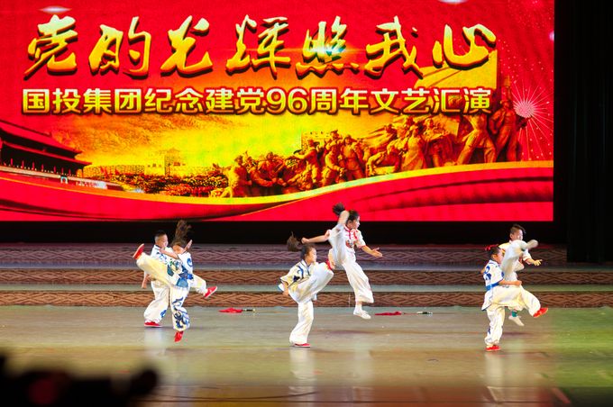 一曲《你是一面旗幟》拉開了文藝匯演的帷幕?!端亩沙嗨銎姹贰陡枨?lián)唱》回顧了黨的光輝歷程;《中國進行曲》《共筑中國夢》歌頌了祖國蓬勃發(fā)展,奮力實現(xiàn)偉大中國夢的美好愿望;集團公司自編自創(chuàng)的大合唱《國投員工競風(fēng)流》氣勢磅礴,展現(xiàn)了國投人奮發(fā)向上、開拓創(chuàng)新的精神風(fēng)貌。此次文藝匯演,集團公司各所屬企業(yè)、各基層黨組織積極參與,精心編排了歌曲、舞蹈、小品、快板、京劇、魔術(shù)、武術(shù)、書法、詩朗誦、樂器合奏等形式多樣、內(nèi)容豐富的文藝節(jié)目,共有200余名黨員、職工踴躍參加演出。整場演出體現(xiàn)了廣大黨員和干部職工愛黨敬業(yè)的心聲,唱出了不忘歷史的情懷,表達了對黨的生日深深祝福。
