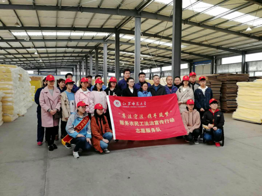 2017年11月15日,徐州市總工會法律工作部部長廖火生與江蘇師范大學法學院團委書記劉姍帶領志愿服務隊來到徐州遠大玻纖制品有限公司,開展“尊法守法,攜手筑夢”服務農(nóng)民工法治宣傳活動,遠大公司組織職工與志愿服務隊進行了座談交流。