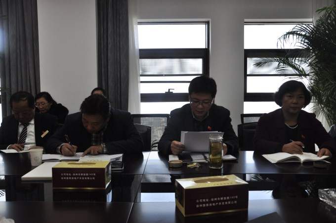會(huì)議首先由黨總支書(shū)記韋大森傳達(dá)了集團(tuán)公司《關(guān)于認(rèn)真學(xué)習(xí)傳達(dá)貫徹黨的十九大精神的通知》(徐國(guó)投黨﹝2017﹞29號(hào))文件精神,宣講了《黨的十九大精神學(xué)習(xí)》材料中“習(xí)近平新時(shí)代中國(guó)特色社會(huì)主義思想”、“中國(guó)特色社會(huì)主義進(jìn)入新時(shí)代”兩個(gè)專(zhuān)題,傳達(dá)了集團(tuán)公司黨委書(shū)記、董事長(zhǎng)李曉東同志在五大平臺(tái)公司組織書(shū)記會(huì)議上的指示精神和工作安排。隨后,黨總支副書(shū)記、董事長(zhǎng)王鵬領(lǐng)學(xué)了《人民日?qǐng)?bào)》刊發(fā)的習(xí)近平總書(shū)記署名文章《弘揚(yáng)“紅船精神”、走在時(shí)代前列》,并結(jié)合公司發(fā)展轉(zhuǎn)型實(shí)際,與參會(huì)黨員干部交流學(xué)習(xí)十九大精神心得體會(huì)。最后,黨總支副書(shū)記、總經(jīng)理趙瑩同志傳達(dá)了集團(tuán)公司《關(guān)于組織開(kāi)展“不忘初心、牢記使命”知識(shí)競(jìng)賽活動(dòng)的通知》(徐國(guó)投黨﹝2017﹞32號(hào))文件精神,布置“不忘初心、牢記使命”知識(shí)競(jìng)賽工作。