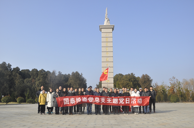 為進(jìn)一步學(xué)習(xí)貫徹黨的十九大及十九屆四中全會精神,貫徹落實(shí)習(xí)近平新時代中國特色社會主義思想,圍繞“不忘初心、牢記使命”工作部署,12月24日上午,國泰投資黨總支及各所屬黨支部赴集團(tuán)公司“愛國主義教育實(shí)踐基地”——新沂市小窯頭烈士陵園開展“緬懷英烈明愛國初心,學(xué)深黨史擔(dān)強(qiáng)企使命”主題黨日活動。黨總支及所屬支部全體黨員、積極分子及中層以上非黨員干部參加活動。