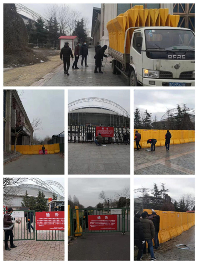 3.開展外圍防疫。因特殊地理位置,華強(qiáng)資產(chǎn)公司委托成功物業(yè)公司承擔(dān)本部外圍防疫工作,經(jīng)過現(xiàn)場(chǎng)勘察制定了園區(qū)水馬封堵及復(fù)工園區(qū)防疫方案。在目前防疫工作嚴(yán)峻、水馬租賃困難及運(yùn)輸不便的情況下,通過各種途徑聯(lián)系到租賃方,于2月11日上午組織成功大廈工程人員、藝術(shù)館項(xiàng)目人員以及華強(qiáng)安防人員利用半天時(shí)間進(jìn)行突擊封堵,除主要出入口封堵外,還對(duì)在仔細(xì)排查園區(qū)發(fā)現(xiàn)的十余處人為損毀缺口進(jìn)行封堵處理,同時(shí)清退閑雜人員并張貼封園通告。